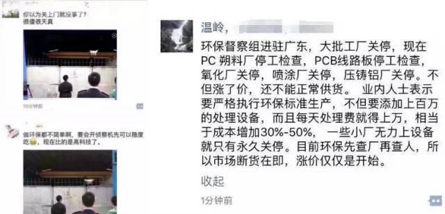 由于环保翻脸!停工停产!涨价封盘!价格上天!不少中下游工厂已拿不到上游原材料,无力再撑下去了,纷纷发出停止接单通知,甚至直接发出提前放假通知!
