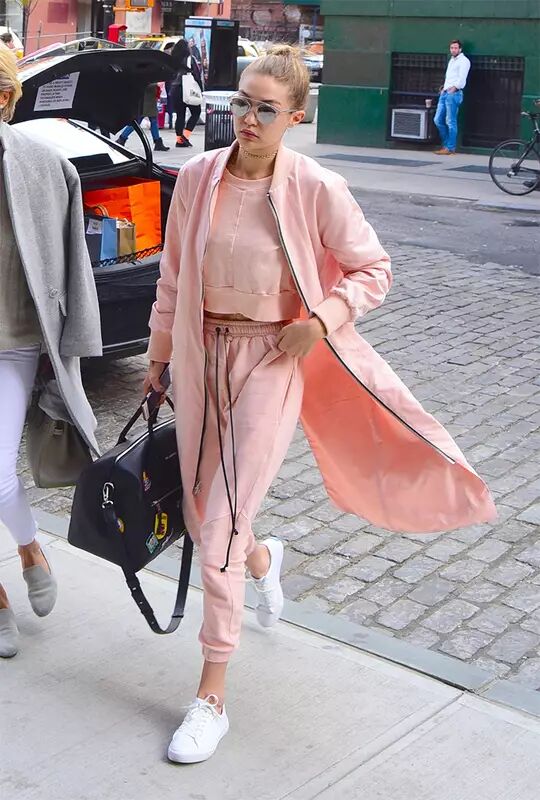 粉色其实很难穿,只是今年流行的淡粉色纯度更低,让白色与淡粉色更加融合。所以把粉色深浅色度搭配在一起,其实感觉还不错,不会过于夸张。